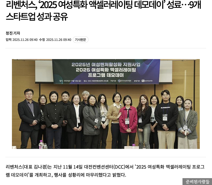 2025 여성 특화 액셀러레이팅 프로그램에 선정되어,