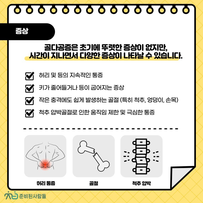 골다공증은 초기에 뚜렷한 증상이 없지만,