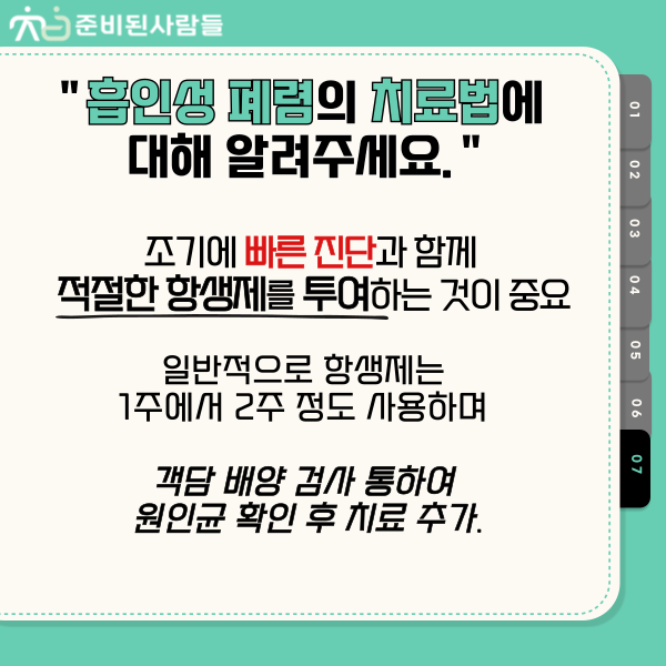 Q. 흡인성 폐렴의 치료법에 대해 알려주세요.