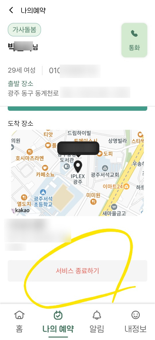 '서비스 종료하기' 버튼이 있습니다.