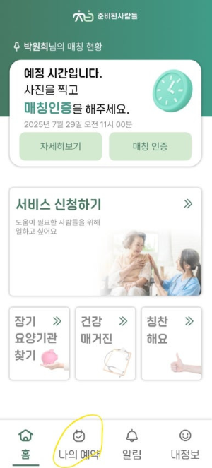'나의 예약'을 선택하는 방법이 있습니다.