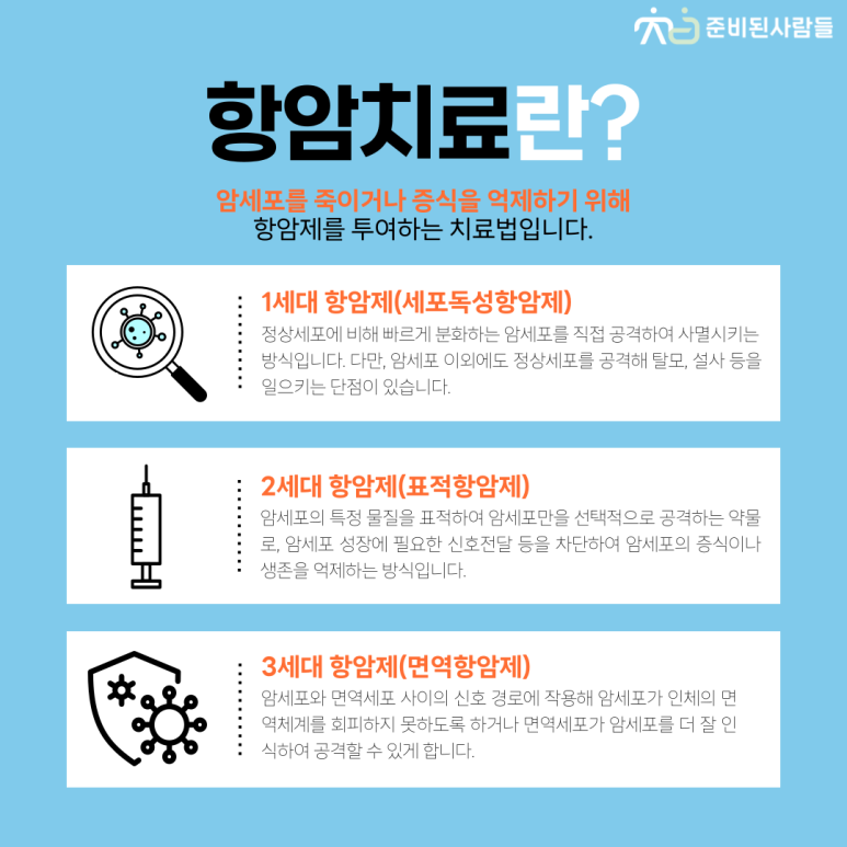 항암치료는 암세포를 죽이거나 증식을 억제하기 위해