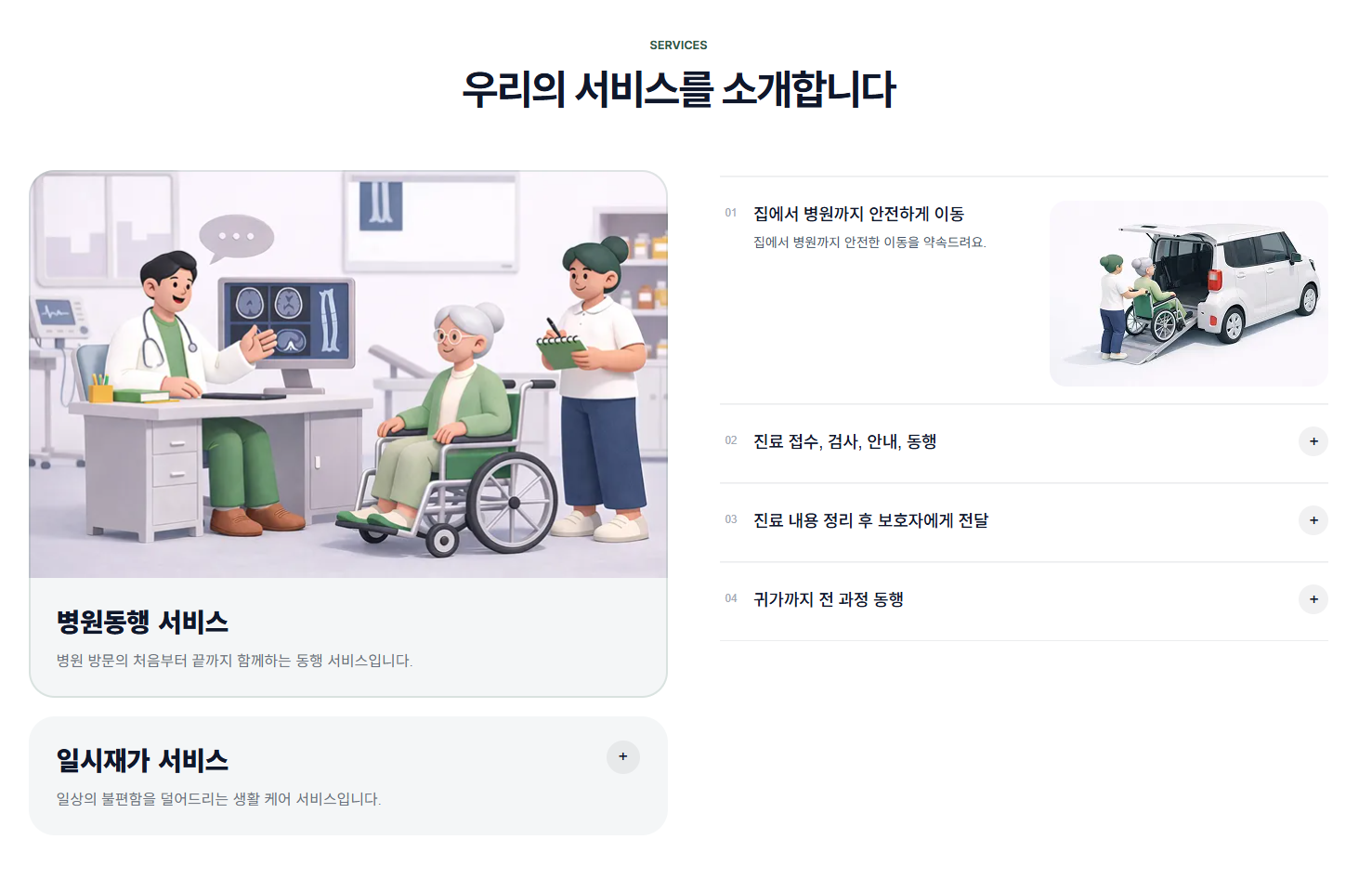 따라서 이 섹션은 사용자가 웹사이트에 접속했을 때 서비스의 핵심 메시지를 가장 먼저 이해할 수 있도록 설계했습니다.