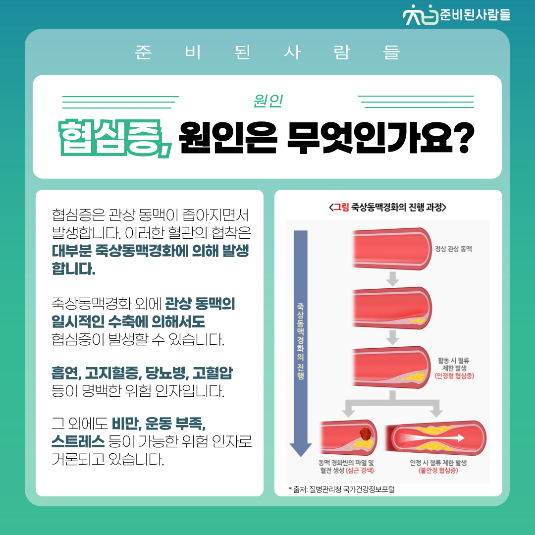 오늘은 협심증의 정의부터 원인, 증상, 예방법,그리고 생활 속 관리법까지 알아보도록 하겠습니다.