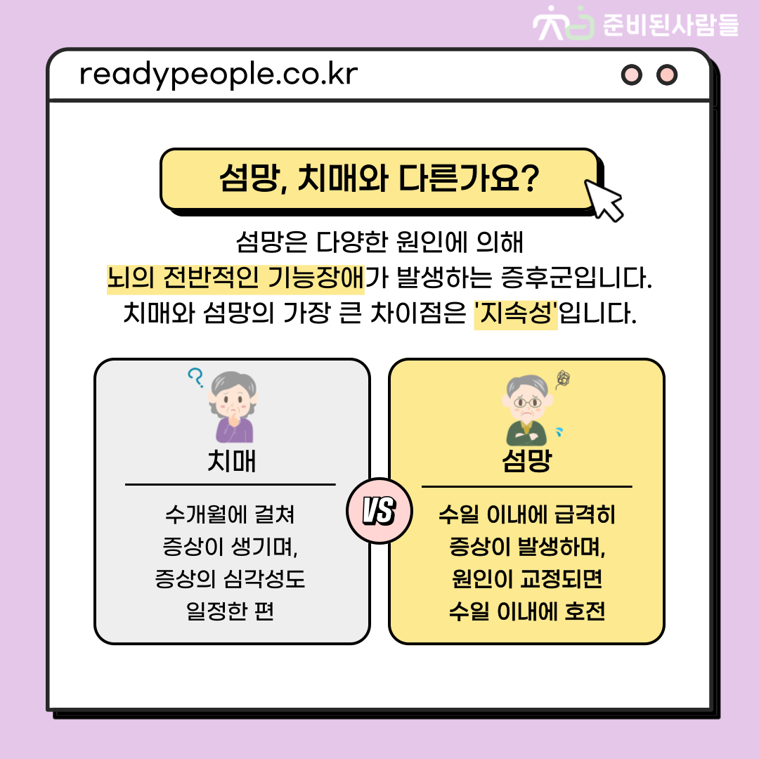 먼저, 섬망은 신체 질환이나 약물, 술 등 다양한 원인으로